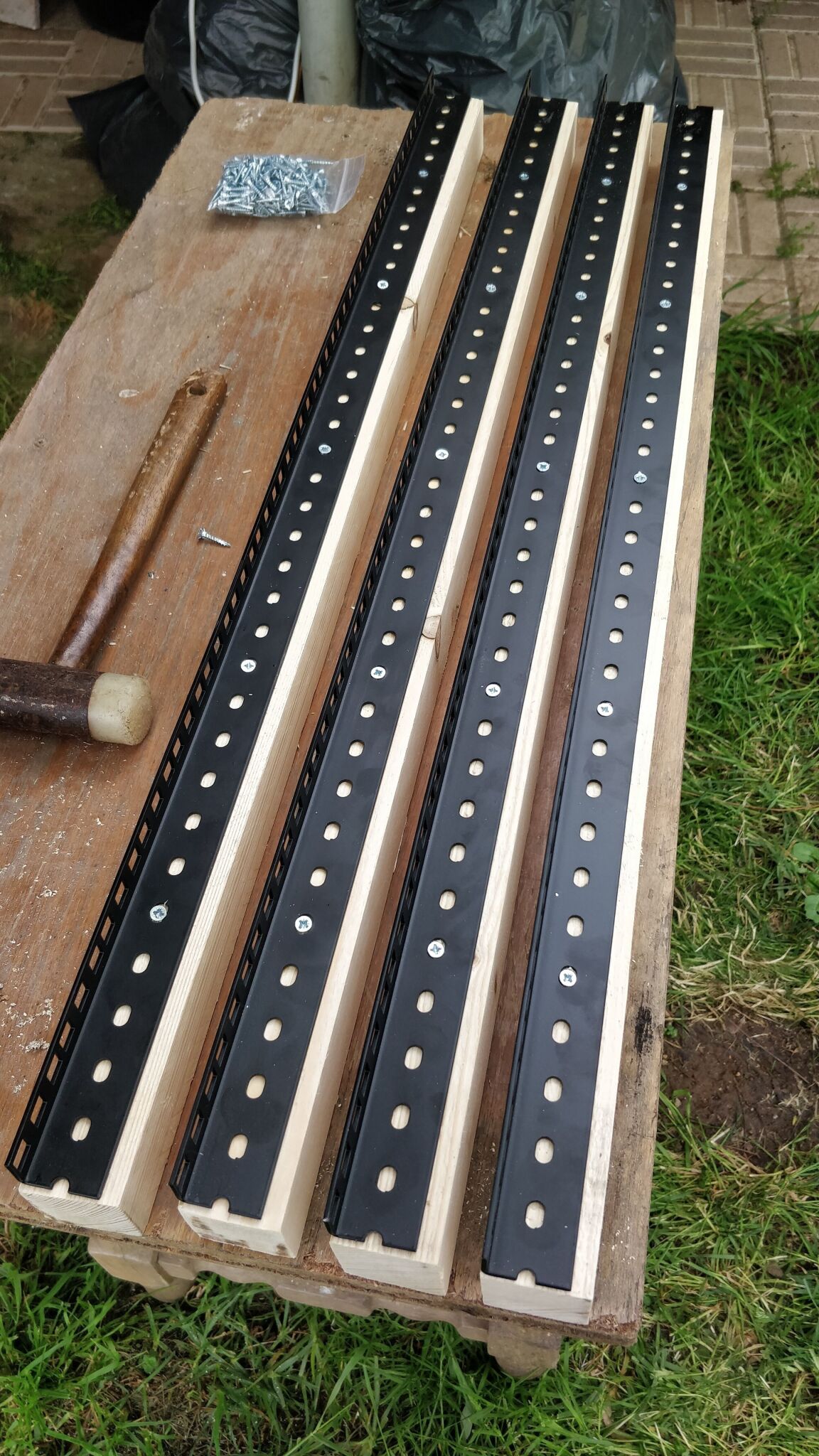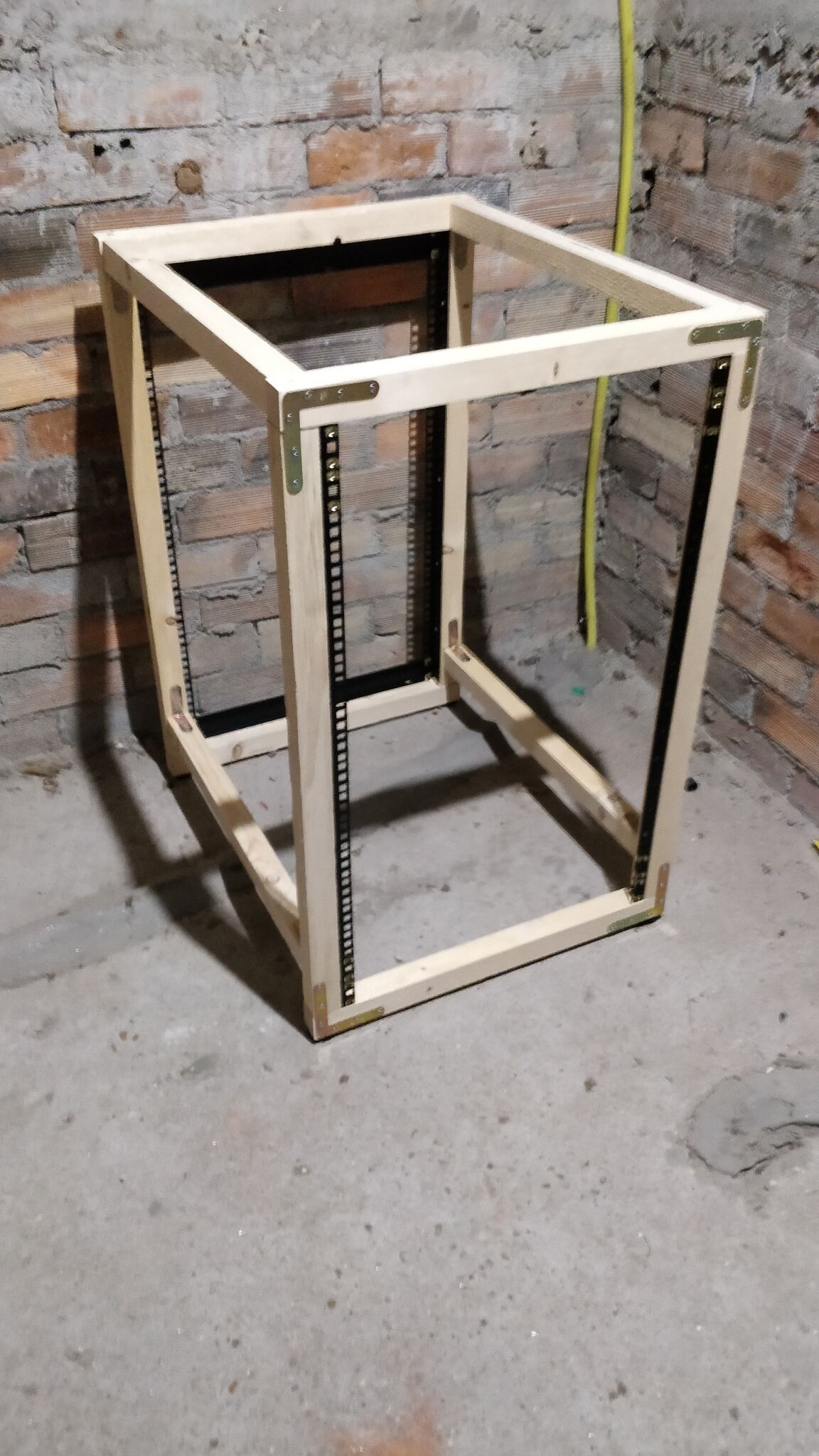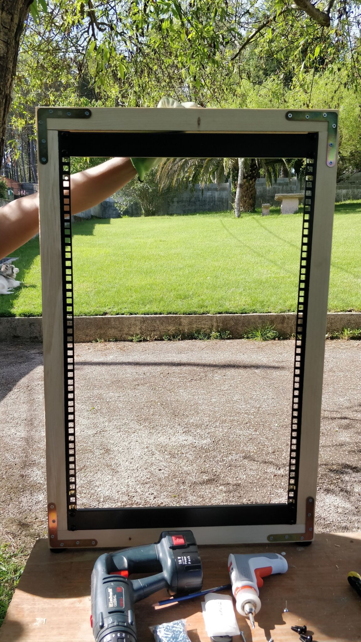 Compré listones, unas guías de rack de 18U, un par de accesorios más, y me puse manos a la obra. El diseño era muy sencillo, e incluso alguien sin experiencia como yo pudo completarlo sin problemas. Además, 18U era bastante, debería quedar espacio de crecimiento para una temporada.